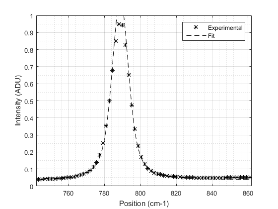 The resolution was evaluated using the FWHM of the peak near 800 cm-1. The result is shown in Figure 4 and is equal to 11 cm-1.